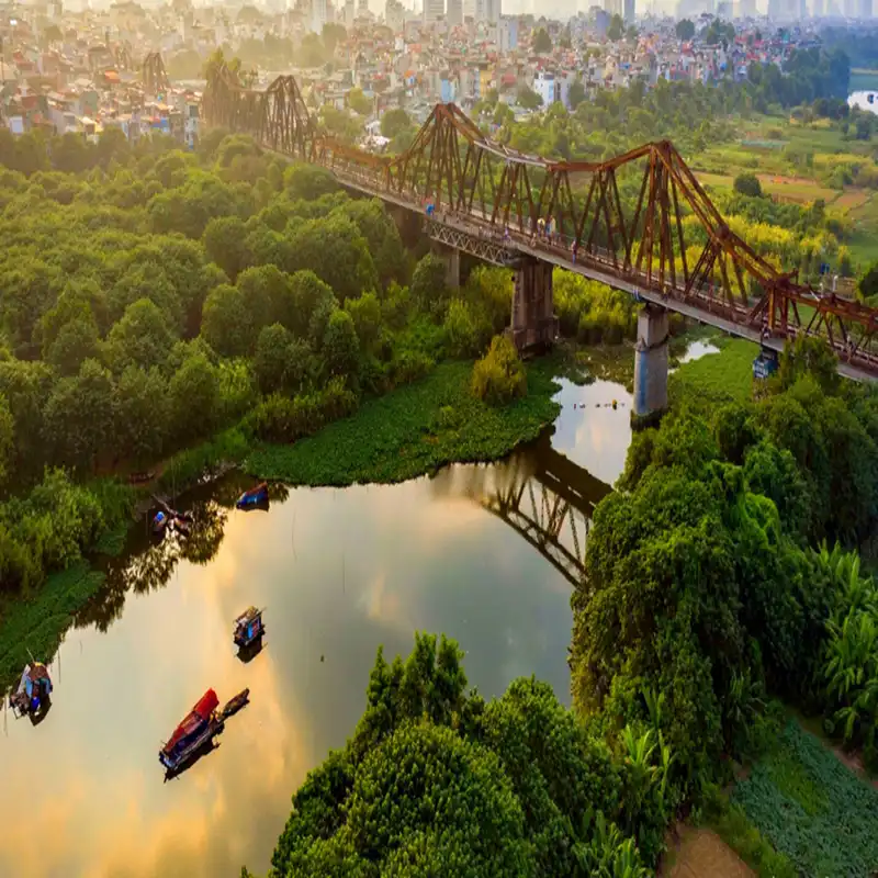 The journey begins in the vibrant heart of Hanoi, where modern energy blends seamlessly with historical charm. Before leaving the city behind, we pause at a scenic viewpoint overlooking the iconic Long Bien Bridge. This historic bridge stretches across the Red River, connecting Hanoi to the vast Red River Delta beyond. As trains rumble across the steel structure and small boats glide along the water below, the contrast between urban movement and rural tranquility becomes clear. This moment offers a symbolic transition, marking the shift from city life to the peaceful countryside and setting the tone for the rest of the Hanoi vespa tour.
